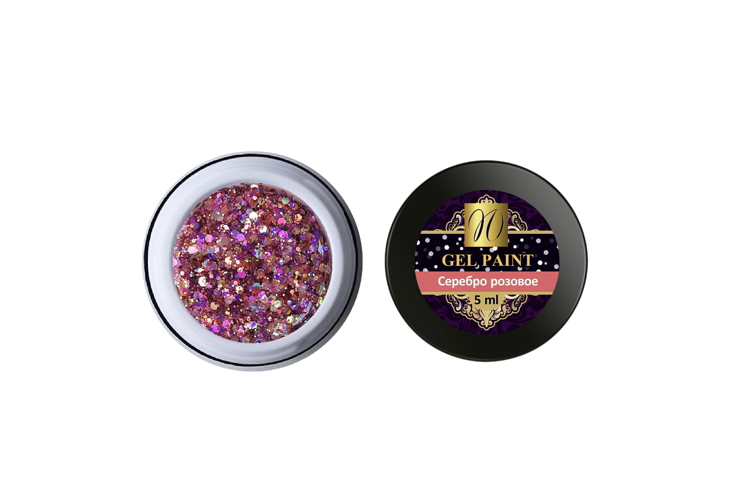 Гелевая краска Gel Paint Nogtika Jewelry 4254, серебро розовое, 5 мл
