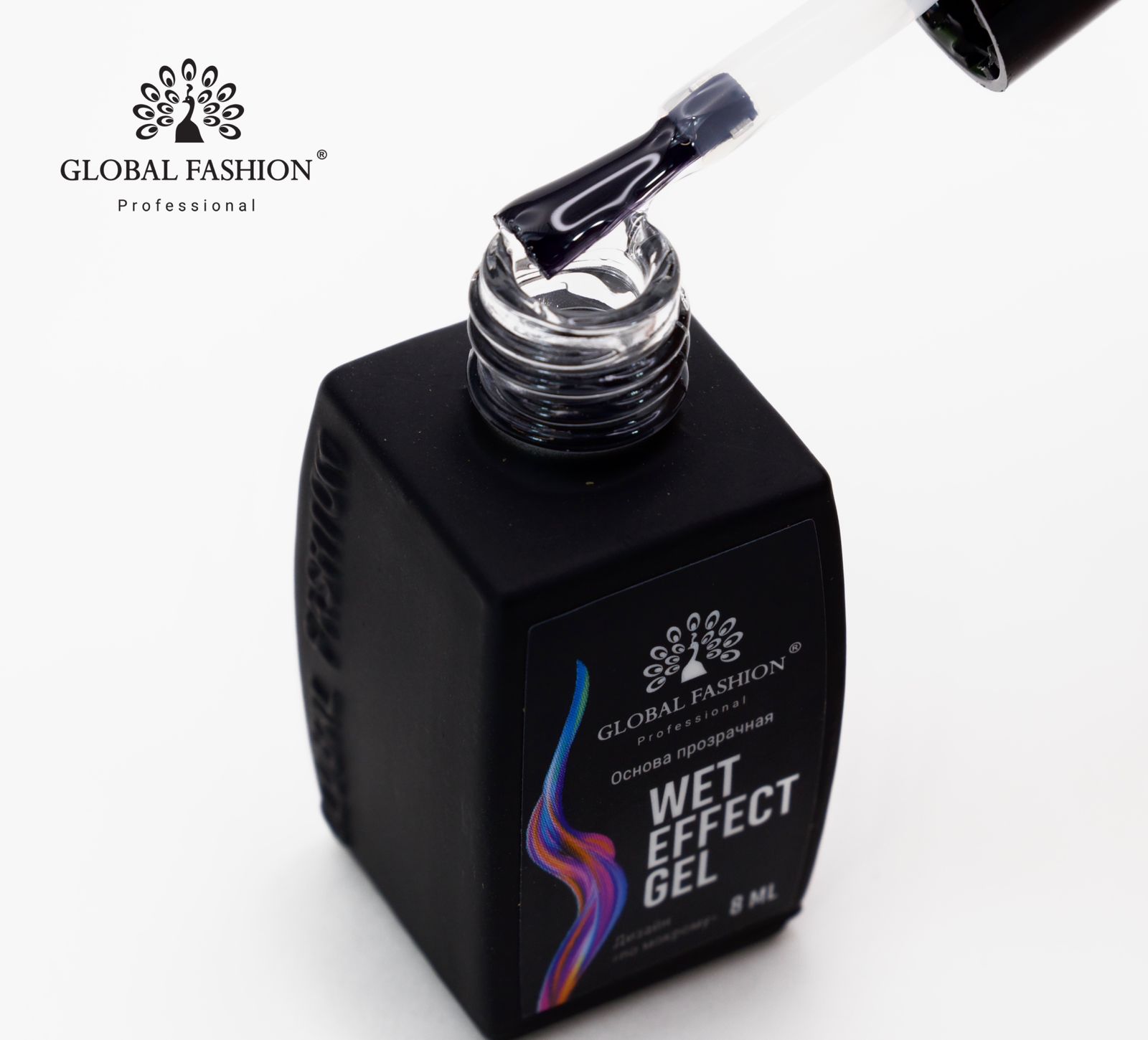 Дизайн создаётся цветными гель-лаками по-мокрому на прозрачное покрытие Wet effect gel, и узоры плавно растекаются, создавая воздушный эффект акварели на ваших ногтях! Наносится на любое просушенное цветное или базовое покрытие.