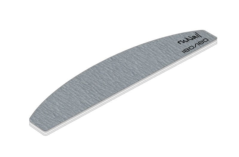 Полукруглая профессиональная пилка для искусственных ногтей серого цвета. Абразивность пилки: 180/180. Используется для обработки поверхности при покрытии и коррекции гелем.