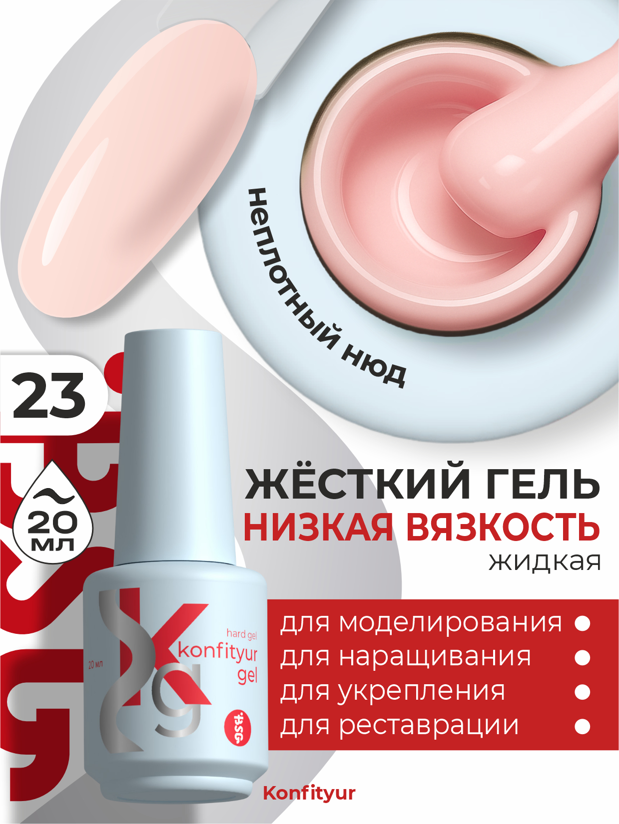 Отзывы Жёсткий гель в бутылке Konfityur №23 НИЗКАЯ ВЯЗКОСТЬ - Камуфляж с персиковой ноткой (неплотный), 20 мл