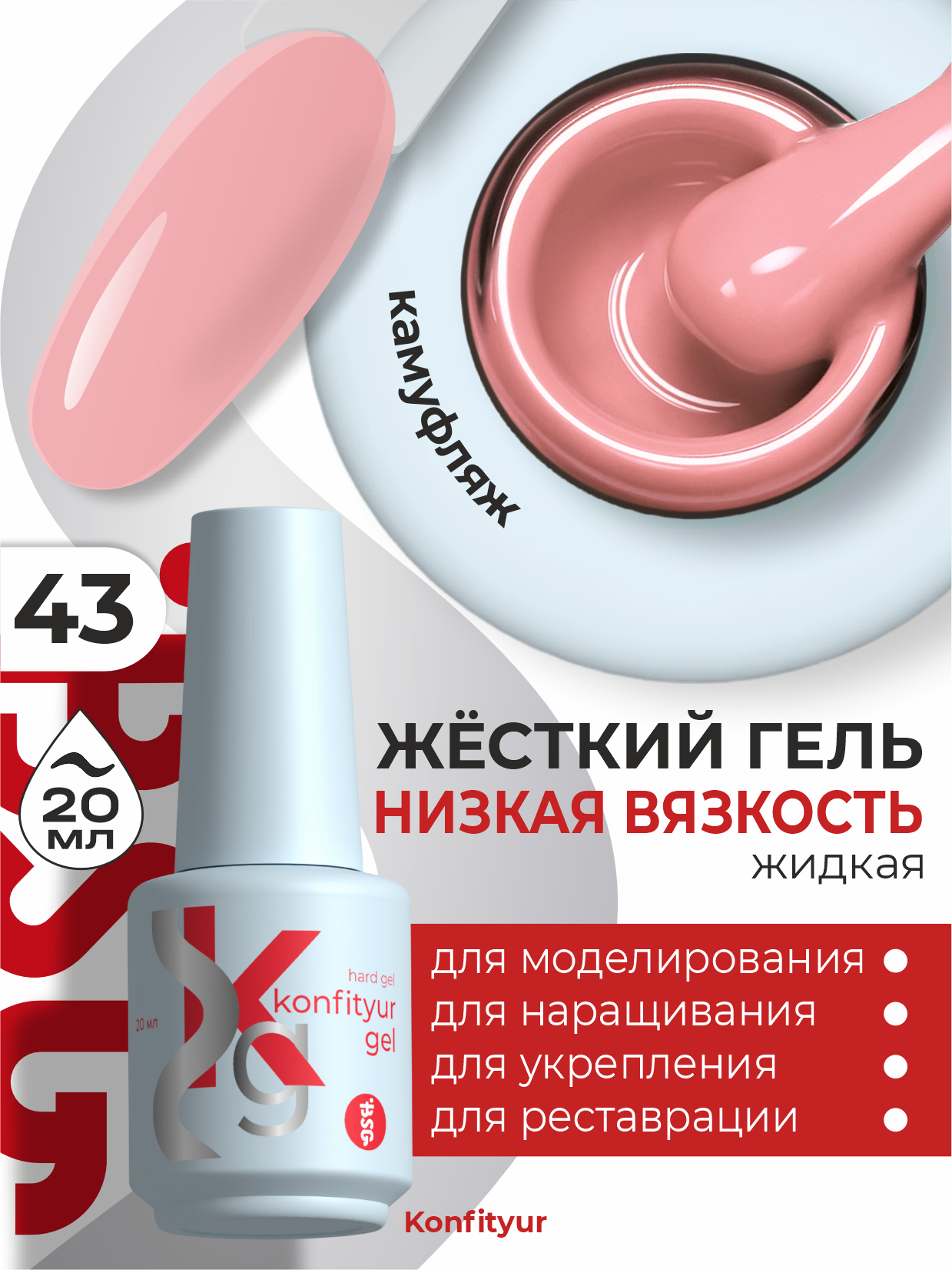 Жёсткий гель в бутылке Konfityur №43 НИЗКАЯ ВЯЗКОСТЬ - Розовый фламинго (плотный), 20 мл