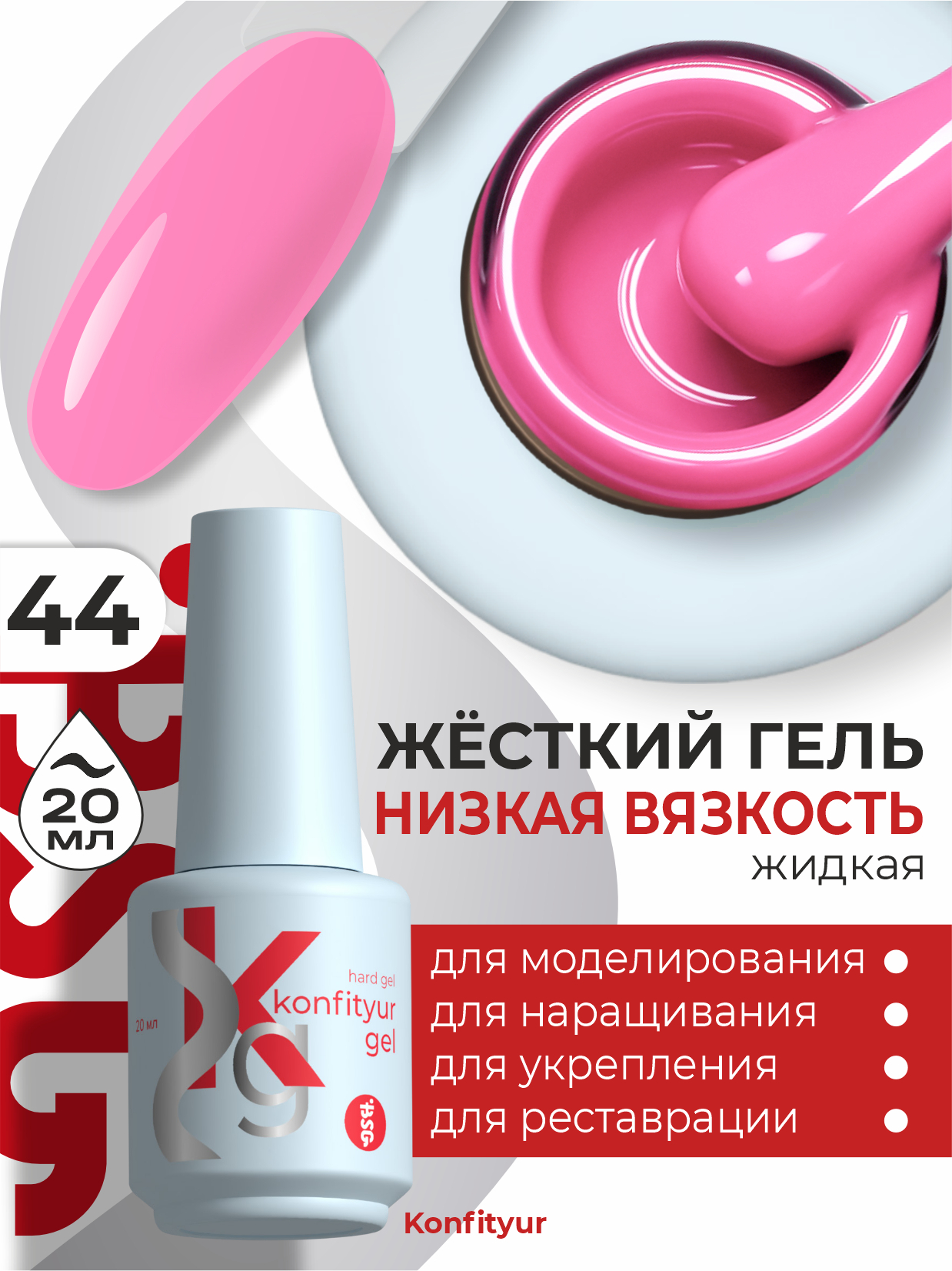 Жёсткий гель в бутылке Konfityur №44 НИЗКАЯ ВЯЗКОСТЬ - Ярко-розовый (плотный), 20 мл