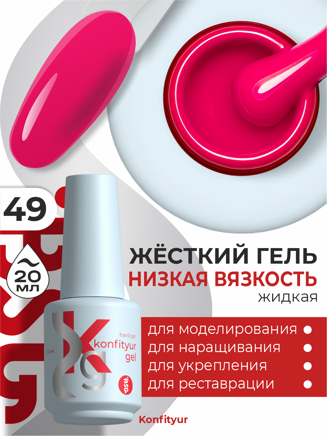 Отзывы Жёсткий гель в бутылке Konfityur №49 НИЗКАЯ ВЯЗКОСТЬ - Капризный розовый (плотный), 20 мл